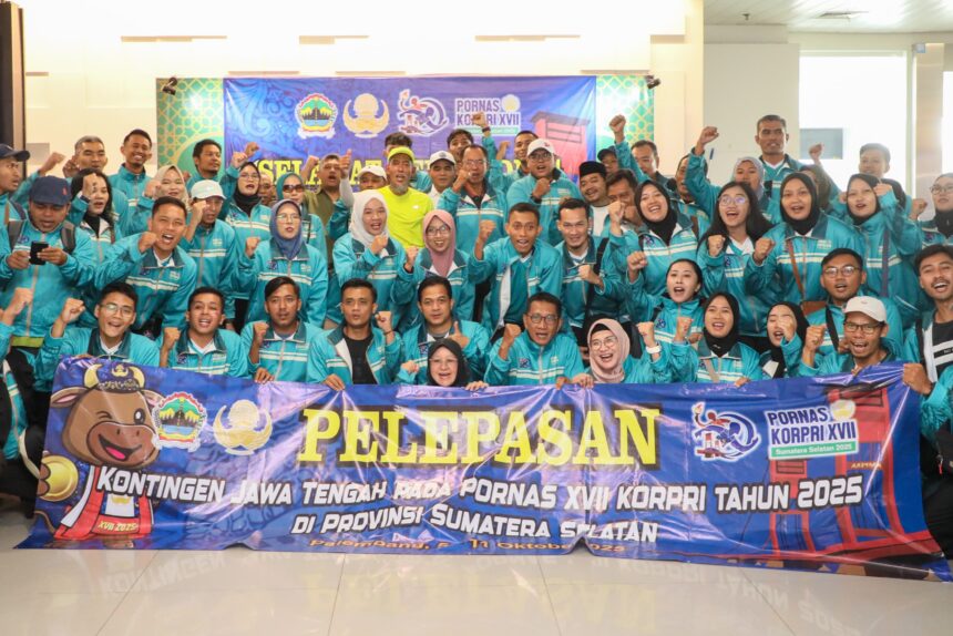 PersadaPos, Semarang – Sekretaris Daerah Jawa Tengah Sumarno melepas pemberangkatan kontingen Jateng untuk berlaga pada ajang Pekan Olahraga Nasional (Pornas) XVII Korps Pegawai Republik Indonesia (Korpri) Tahun 2025 di Kota Palembang, Sumatera Selatan, 5-11 Oktober 2025.