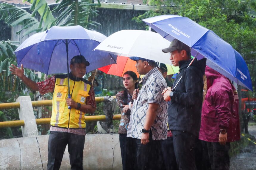 Taj Yasin meninjau lokasi longsor di pintu masuk Wisata Colo, Desa Colo, Kecamatan Dawe, Kabupaten Kudus, Selasa, 13 Januari 2026. (Foto:Dok)