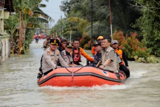 Menggunakan perahu karet Ahmad Luthfi menjenguk warga korban banjir di…