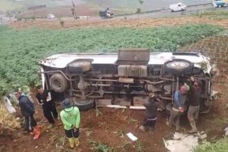Minibus Ditumpangi Wisatawan Terguling di Banjarnegara, Tujuh Orang Luka Berat