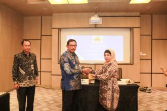 Nana Sudjana menyerahkan SK kepada Pj Bupati Batang Lani Dewi…