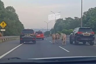 Segerombolan Sapi Berada di Jalan Tol Kota Semarang, Sempat Repotkan Pengendara