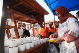 Taj Yasin mengamati penyajian soto gratis di Jepara, Minggu, 24…