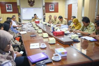 Taj Yasin memimpin rapat koordinasi penanganan banjir dan rob Demak,…