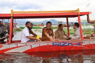 Ahmad Luthfi naik perahu melihat enceng gondok di Bukit Cinta,…
