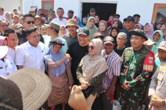 Ahmad Luthfi di tengah warga terdampak rob di Pemalang, Rabu,…