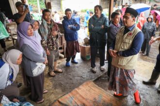 Taj Yasin mengunjungi warga terdampak banjir Pemalang di pengungsian, Minggu,…