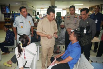 Ahmad Lutfhi berbincang-bincang dengan warga yang memanfaatkan program penghapusan tunggakan…