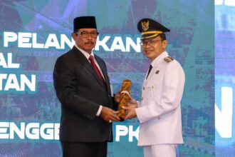 Nana Sudjana menyerahkan piagam penghargaan pada Samsat Award…