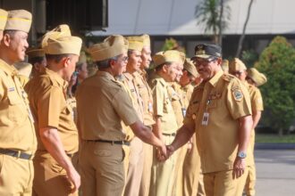 Nana Sudjana menyapa dan menyalami para ASN saat…
