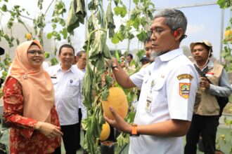 Sekda Jateng Sumarno memanen melon hasil inovasi petani…