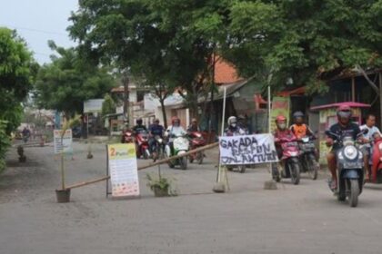 Jalan WR Supratman di Juwana Rusak Parah, Warga Jengkel Pasang Blokade