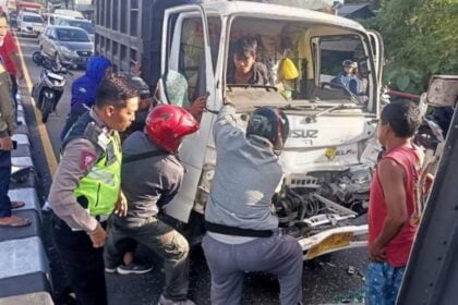 Diduga Rem Blong, Truk Tronton Boks Tabrak Pengendara Motor di Magelang